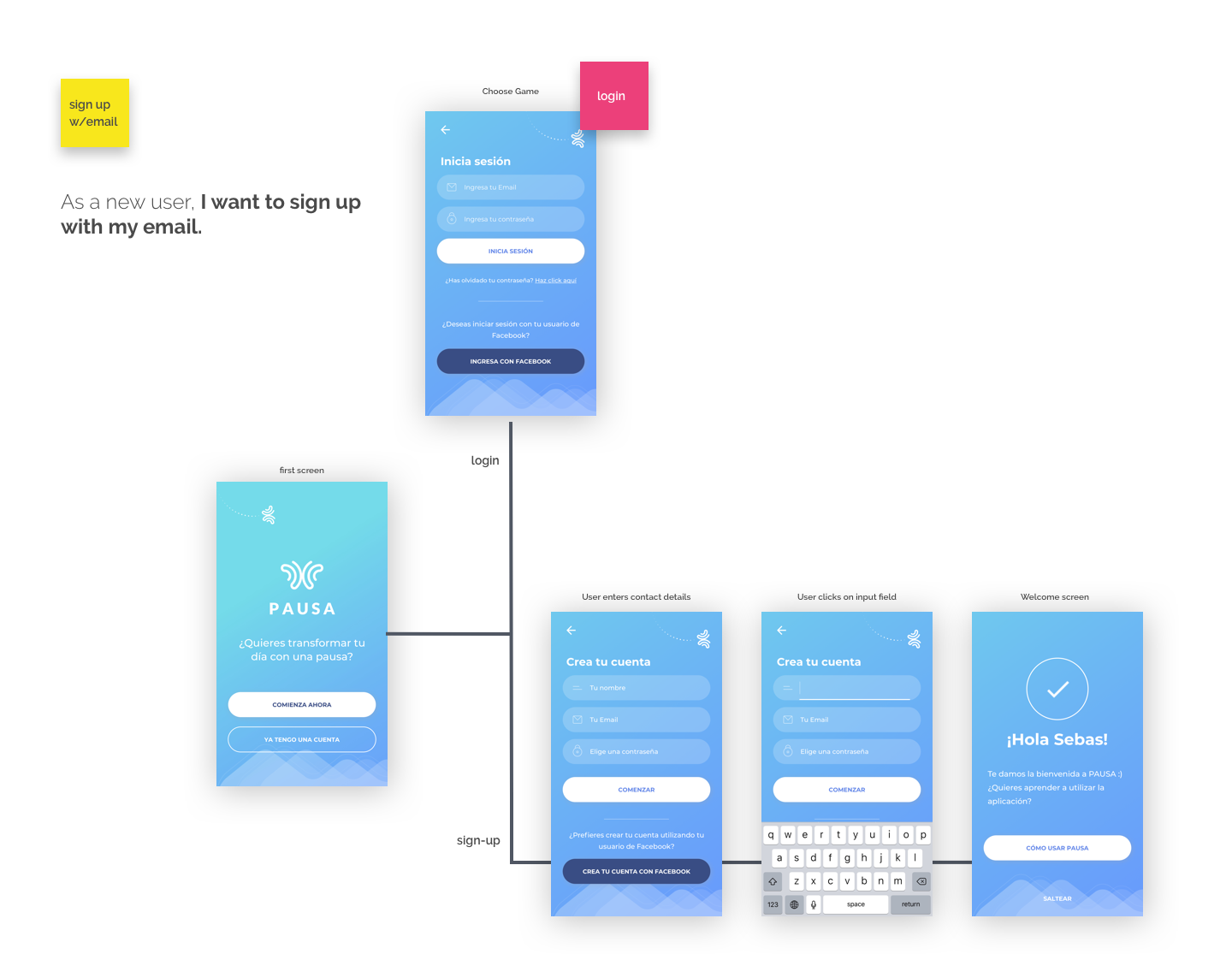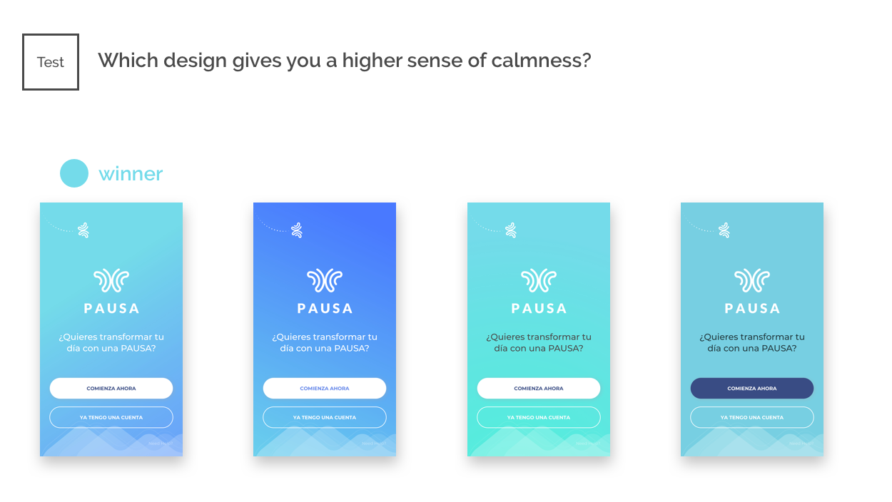 Thanks to the competitive analysis and survey conducted, we were able to add a new high-priority task: we realized that allowing users to understand more about what Pausa is about before signing up would help them take the decision to start. Thus, we decided to provide a series of messages right at the sign-up stage.