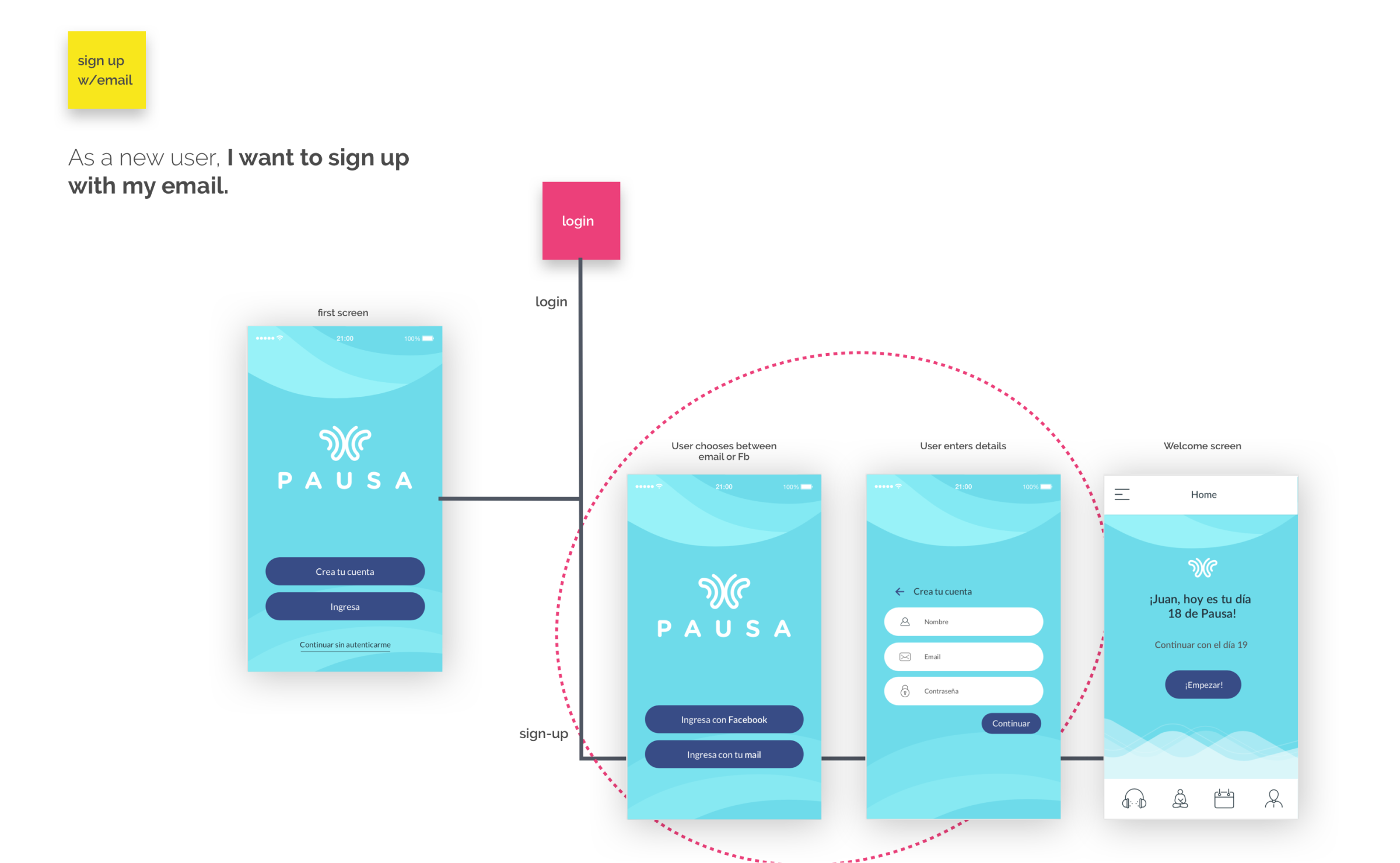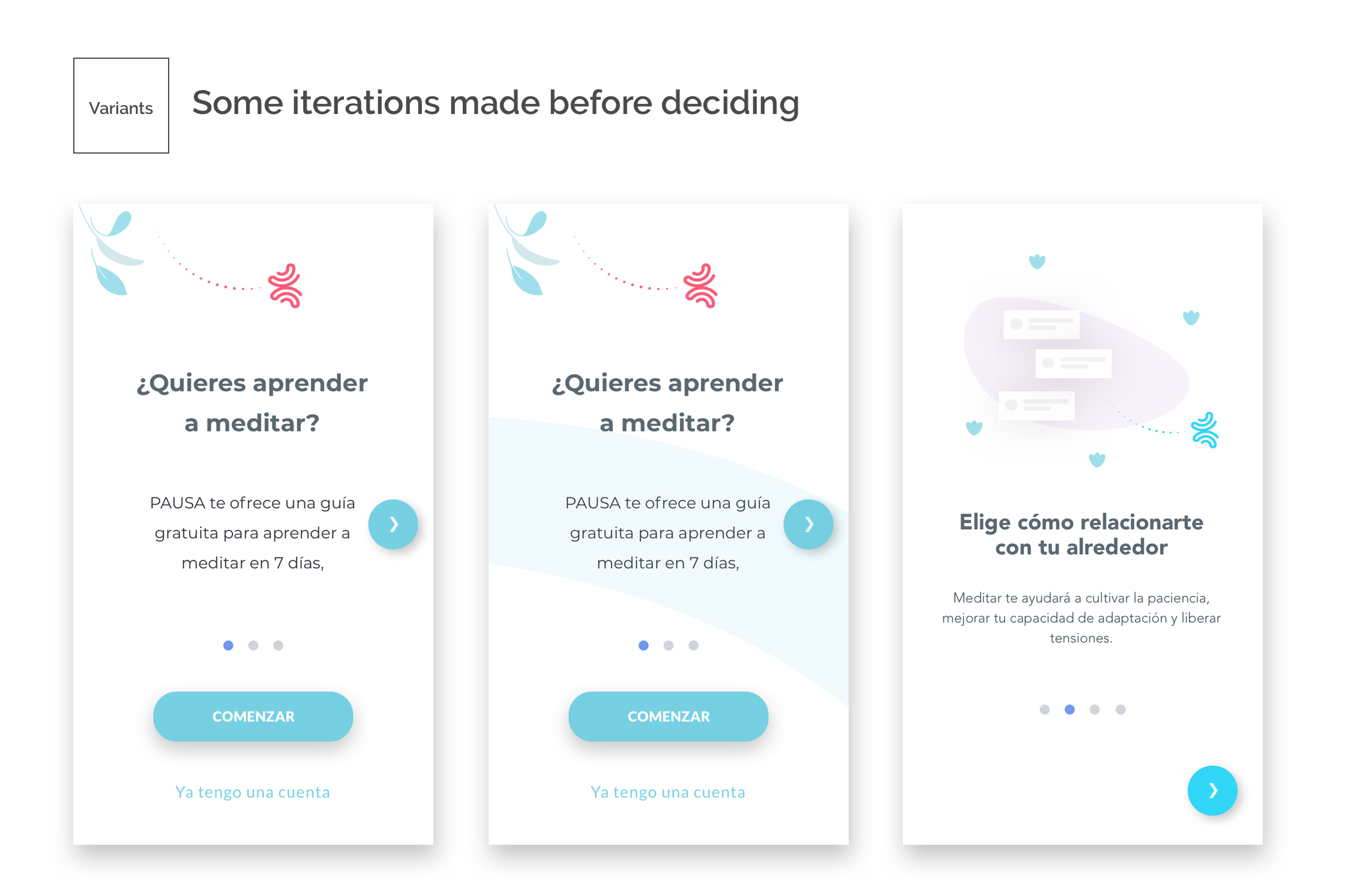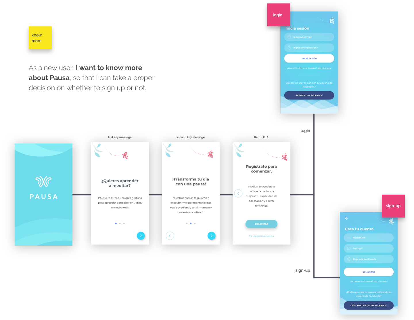 This is how I redesigned the sign-up process for meditation app Pausa, with the goal of increasing sign-ups rate. This was part of a larger project, where I also created an onboarding process after sign-up.